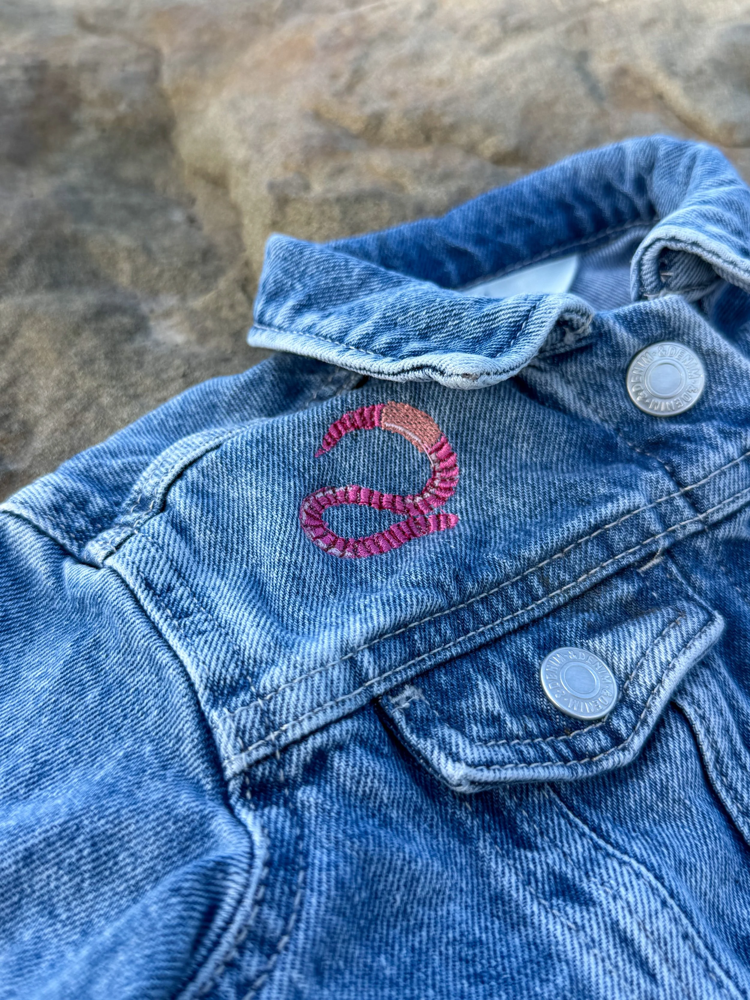 Each Rooke Denim jacket starts with a thrifted find—carefully sourced secondhand denim that’s cleaned, restored, and reimagined. By giving new life to pre-loved pieces, we keep textiles out of landfills and celebrate sustainable fashion in a fun, creative way. Every jacket is one-of-a-kind, just like the tiny adventurer who wears it!